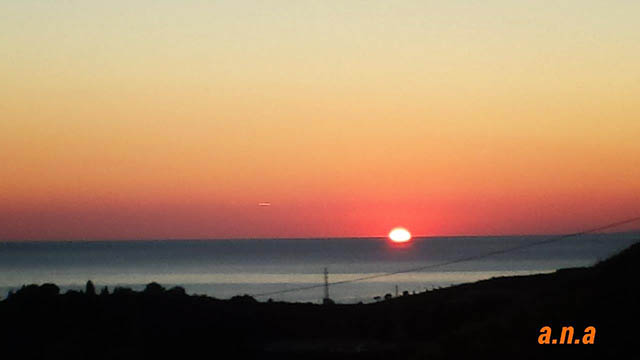 Ana Gonfer nos manda estas dos fotos fotones de la puesta de sol desde El Morche. Si os fijáis, os daréis cuenta que el sol se oculta por el mar, pero lo curioso es que en este mes también sale por el mar en esta zona de la Costa Malagueña.