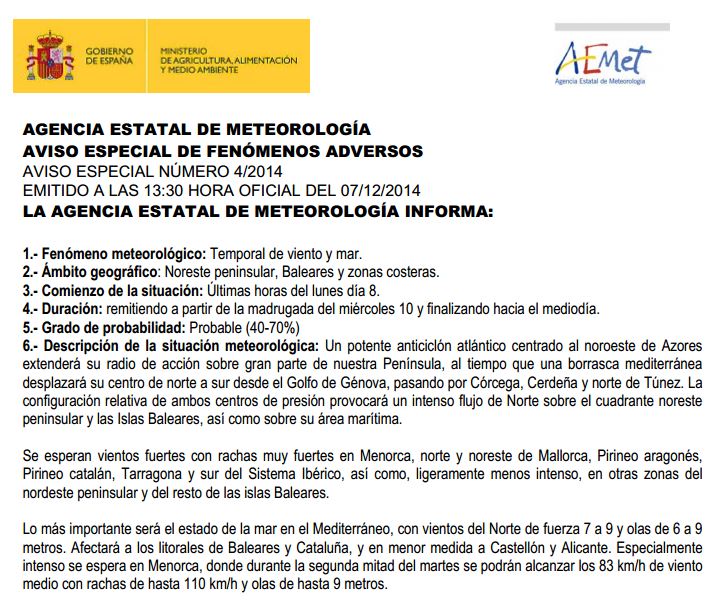 Os paso el aviso de la aemet.
