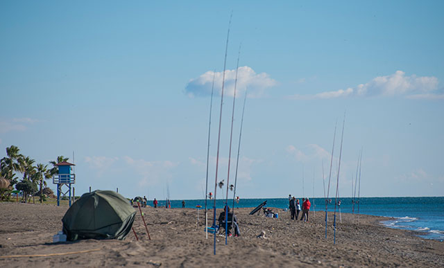 De nuevo los pescadores y el cielo azul eran los protagonista en la orilla de la playa. Tres nubes conté hacia el este, buenoooo cuatro y media.