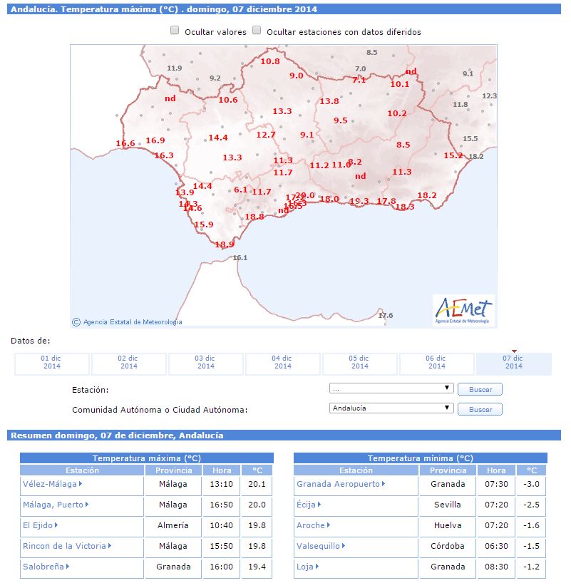 La máxima de la península la dío Vélez Málaga con 20.1 grados, Málaga Capital llego a los 20 y el Rincón a los 19.4 grados.