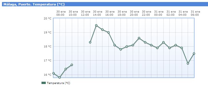 Buenos dias amigos de la meteo, son la seis de la mañana, registro en mi estación 17,4 grados y los cielos están nubosos. A las cinco de la madruga se ha registrado un pequeño chubasco en la Capital Malagueña. El viento de terral de invierno y el poniente tomaran protagonismo dentro de unas horas. También se pueden dar chubascos.