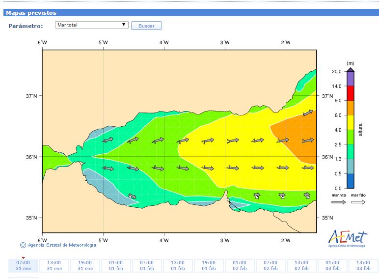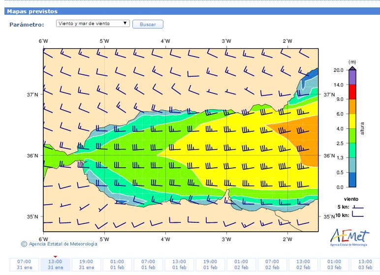 Aunque sea muy repetitivo, os vuevo a comentar que si tenéis que salir a faenar o navegar por el Mar de Alborán y Costas de Almería procuréis extremar la precaución. En estas zonas se esperan hoy olas de 6 a 8 metros.