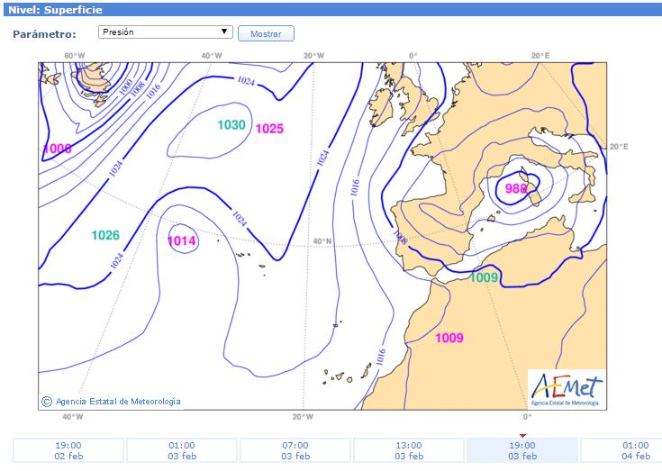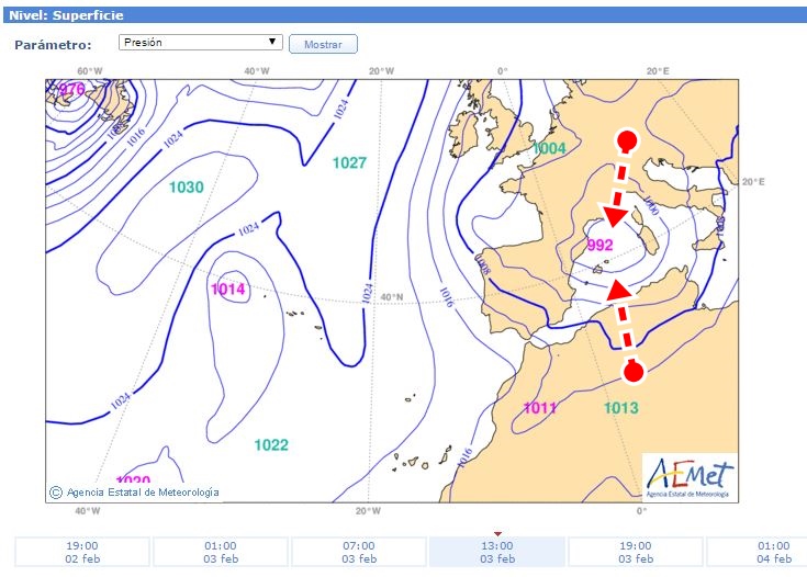 A medida que pasen las horas ya hablaríamos de una borrasca, ya que sufriría un proceso de ciclogénesis y bajaría su presión.