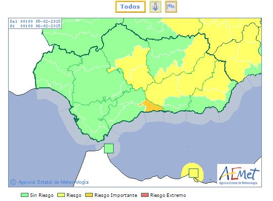 El terral de invierno y el poniente seguirán de protagonistas en la Costa Mediterránea Andaluza. A medida que pasen las horas hará mas frío, si se producen chubascos esta tarde en Andalucía podrían ser de nieve a partir de 500 metros.