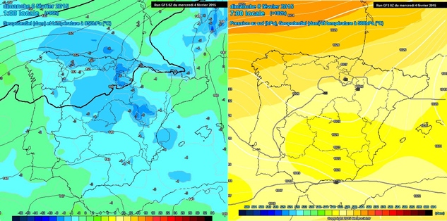Os paso este mapa de superficie del hirlam fuente aemet y la imagen del satélite eumetsat fuente meteogalicia.