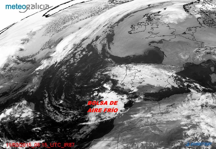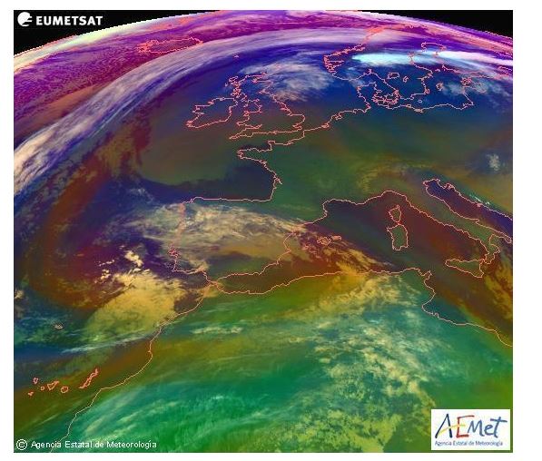 Os paso la imagen del satelite Eumetsat fuente meteogalicia y la de masas de aire fuente aemet.