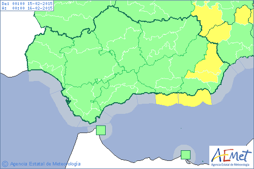Para mañana domingo seguirá casi la misma predicción, solamente añadir que la aemet activa el aviso amarillo por viento y fenómenos costeros en Andalucía y Almería. Hoy sábado serán por olas en estas mismas provincias.