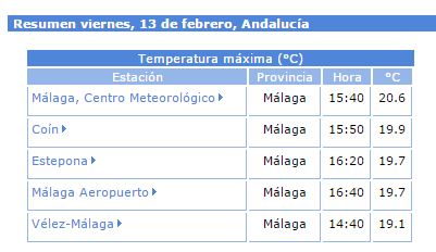 El abrir un nuevo post hoy es para comentaros que ayer viernes Málaga Capital dio la máxima de la península, asi como muchos pueblos expuestos al terral de invierno.