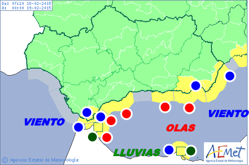 El viento de levante soplara fuerte en el Mar de Alborán,  Estrecho y zonas costeras de Cádiz. La aemet por este motivo ha activado el aviso amarillo por olas en estas zonas y por viento en el Estrecho,  Cádiz y costas de Almería. Las rachas en Tarifa se acercaran a los 80 km/h. En Ceuta y Mellila el aviso amarillo sera por lluvias y viento.