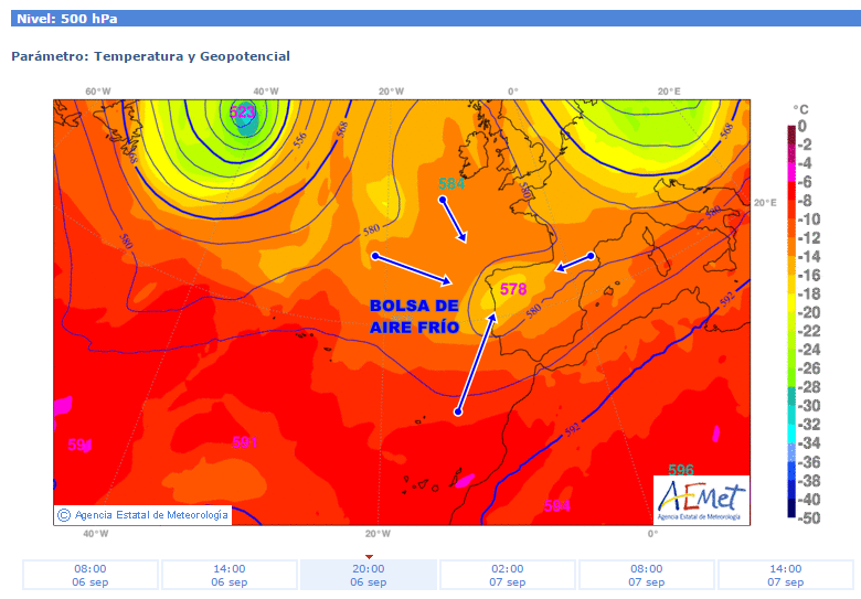 Actualización 7 de septiembre. Previsión del tiempo. Posibilidad de chubascos tormentosos en Andalucía.Bolsa de aire frío. Bestial granizada en Nápoles ,vídeos