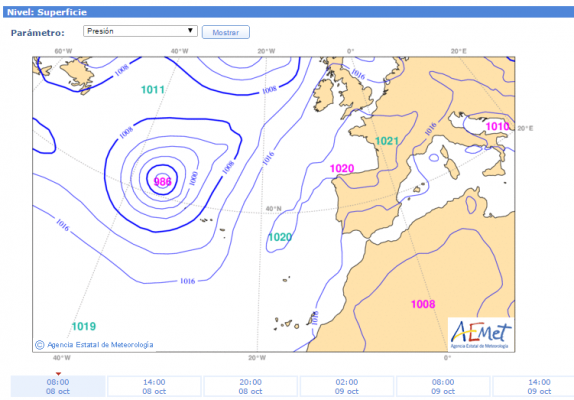 Seria a partir del domingo cuando las lluvias serían las protagonistas en la fachada atlántica. Y si ex Joaquín se centra cerca del Cabo de San Vicente, seria Andalucía la mas beneficiada por las lluvias.