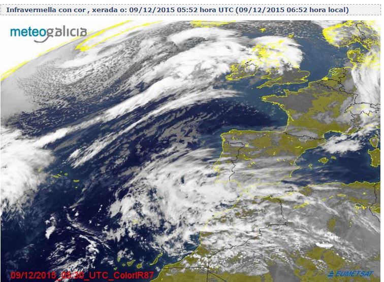 Debido a las nubes que tenemos las mínimas no han bajado mucho, como podéis comprobar en la imagen del satélite y los datos de minimas. Fuente aemet y meteo galicia eumetsat