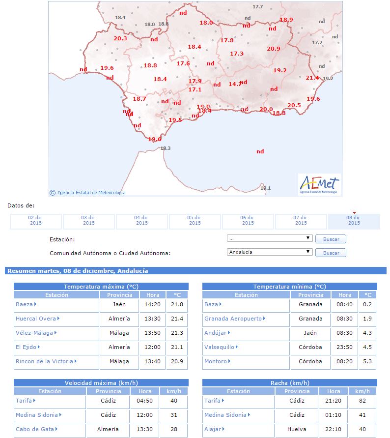 Son las siete de la mañana, mi estación en Málaga Capital registra 11,8 grados, los cielos de toda la comunidad están nubosos y el viento en mi zona sopla flojo de levante. En la zona del Estrecho las rachas ya superan los 50 km/h.