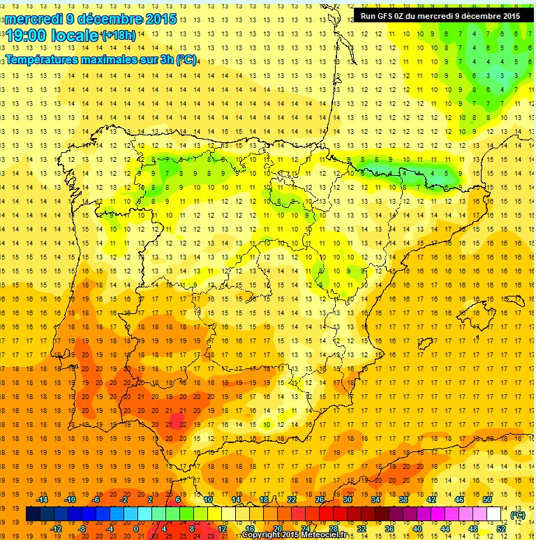 Las máximas serán parecidas a las de ayer. Fuente meteociel.