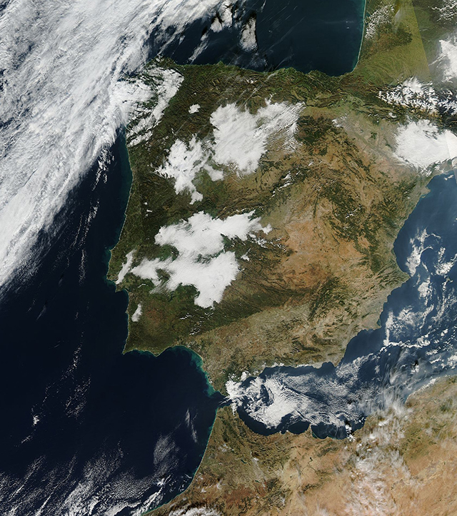 Hoy seguiremos con temperaturas máximas muy por encima de la media en toda nuestra comunidad, ayer por poneros un ejemplo Jerez de la Frontera paso de los 21 grados. Sera la zona de costa mediterránea donde las máximas serán un poco mas bajas hoy martes. Seguiremos con nubes bajas y posibles bancos de nieblas en las zonas cercanas al mar de Alborán. Ayer guarde esta imagen del satélite acua que es una pasada, se ve claramente las nieblas que afectaban a la península a primeras horas de la tarde.