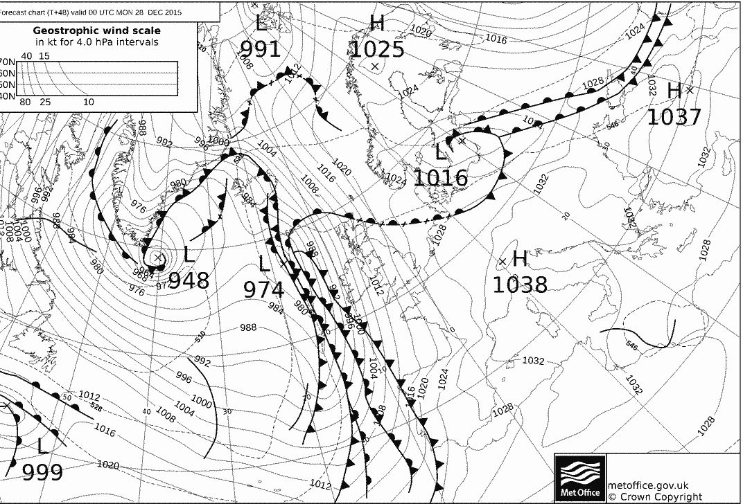 Os paso un mapa previsto para el lunes, y la imagen del satélite eumetsat donde podéis ver donde esta el frente ahora mismo. Fuente mete oficce y meteogalicia.