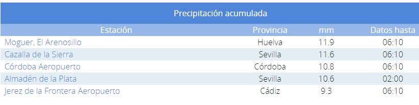 Pero donde mas llovió ayer lunes fue en la provincia de Huelva, destaca El Granado con mas de 50 litros.