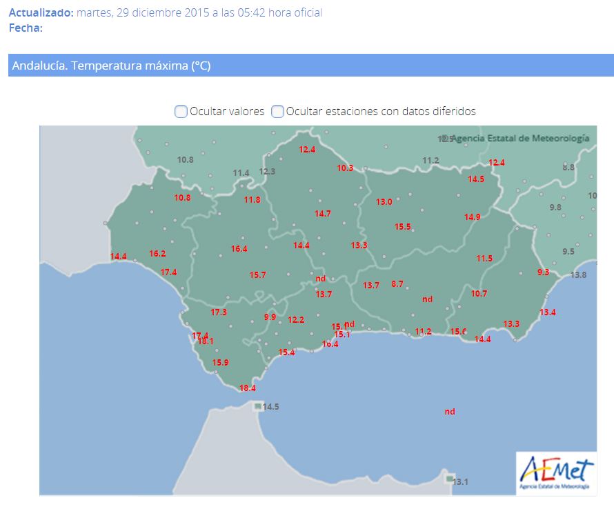 Cuando me he levantado lo primero que suelo mirar es la temperatura de mi estación, menuda sorpresa me he llevado cuando he visto que a las seis de la mañana marcaba 15,1 grados. Pero mas asombrado me he quedado cuando he visto las temperaturas que se daban en nuestra comunidad. Por poneros un ejemplo los de 16 grados Sevilla, los 18 de Tarifa, o los 15 de Jaén. Ahora cuando son las siete menos cuarto han bajado poco. Posiblemente esta pasada madrugada pasara a la historia como la más cálida desde que se tienen registros, y más a ultimo de mes. No hablo de récord de mínimas, ya que lo mismo esta noche se de la mínima en muchos puntos. A todo esto ha contribuido las nubes que no han dejado escapar el calor acumulado del dia anterior. Fuente aemet.