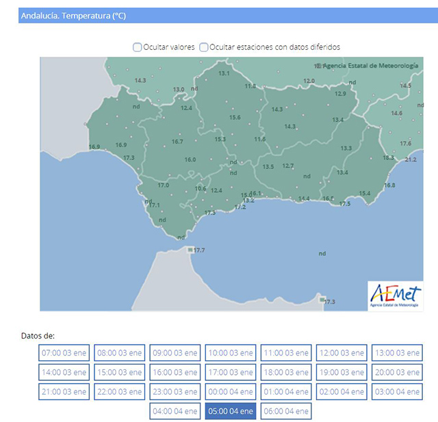 Buenos dias amigos de la meteo, son las siete menos cuarto de la mañana, mi estación en Málaga Capital me marca ahora mismo 16,7 grados, los cielos están poco nubosos y sopla terral de invierno flojo. Os dejo el enlace de la previsión para la Cabalgata de Reyes.