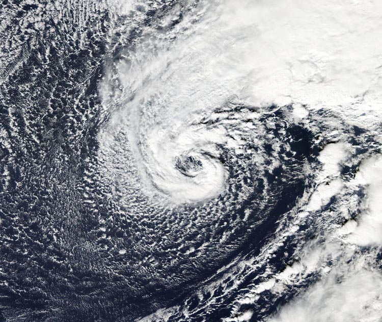 Durante varios días una baja extratropical con frentes asociados se está desplazando por las aguas cálidas de las Bermudas con vientos intensos en su seno del orden de 121 km/h (equivalente a un huracán de categoría 1)
