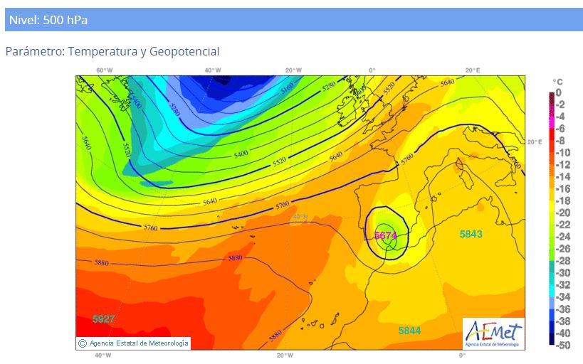 Esto traerá consigo que se puedan producir algunos chubascos en cualquier punto de nuestra comunidad. Estos chubascos pueden ir acompañados de tormentas. De todas formas esta pequeña bolsa de aire frío no tiene mucha entidad, ademas no se dan una serie de factores para que las posibles tormentas cojan bastante desarrollo. Fijaros que se mueve en una zona de altas presiones con aire cálido. Si esta situación se diera en primavera o en otoño si se podrían dar fuertes tormentas.
