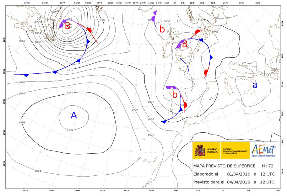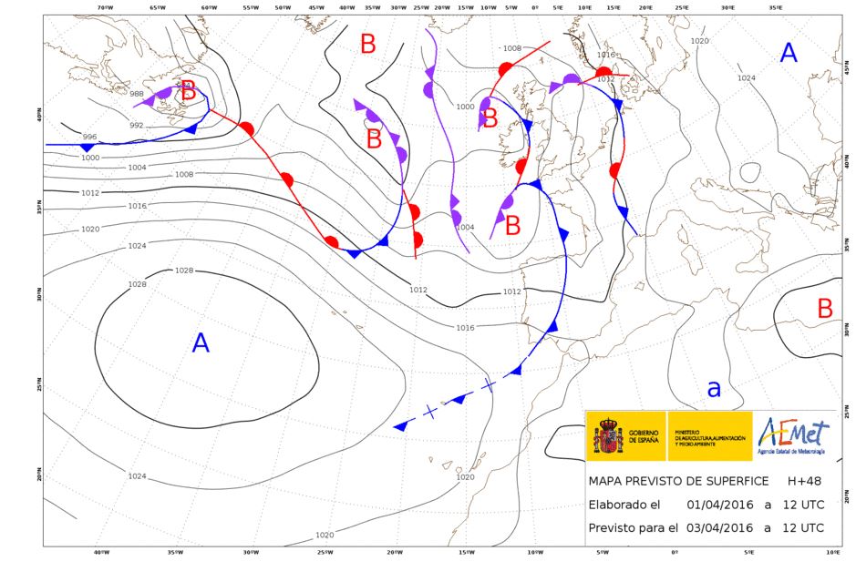 Mañana domingo un frente frío muy debilitado recorrerá nuestra comunidad. Fuente aemet.