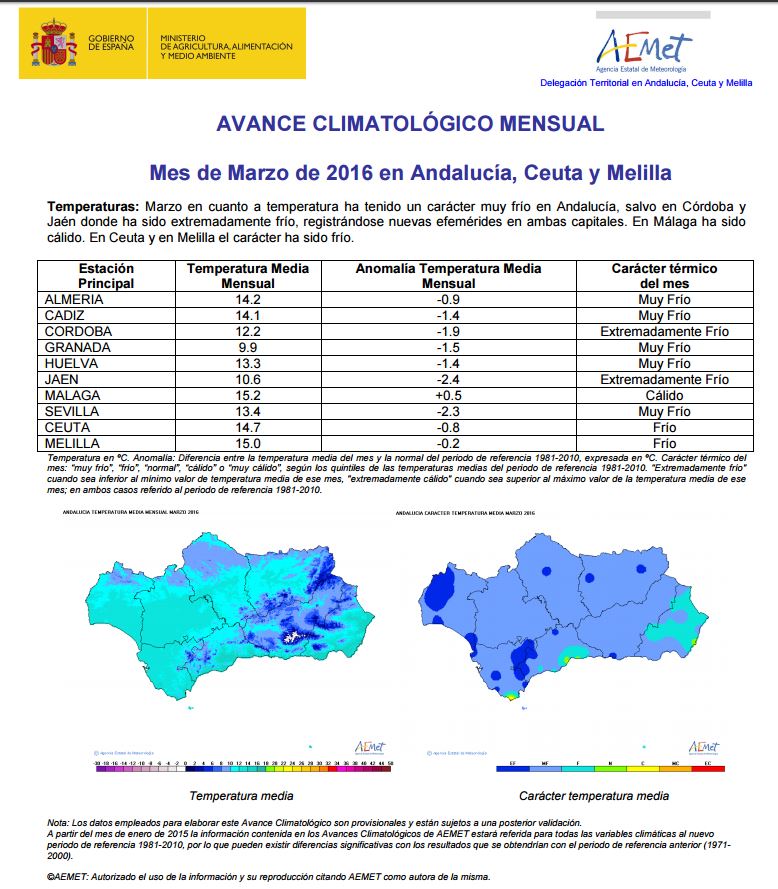 Fijaros que curioso como se ha comportado el mes de marzo en Andalucía. Menos Málaga, las demás capitales han tenido un mes de marzo muy frío.