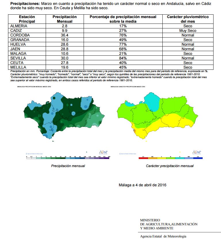 Poco más que contar del dia de hoy, os paso el resumen climatológico del mes de marzo en Andalucía, y los datos más destacados que se dieron ayer en nuestra comunidad.