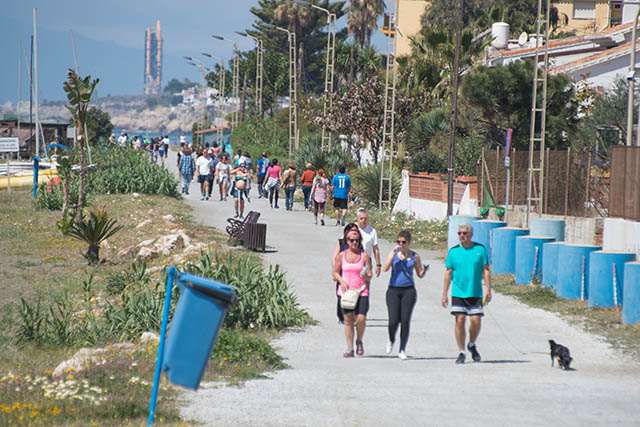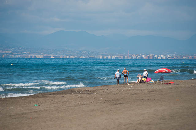 Sobre las once y cuarto llegue a Torre de Benagalbón, había un poco de mar de fondo pero el viento estaba casi en calma. Detrás de la Sierra de Mijas se veía la nubosidad que afectaba a la provincia malagueña, es su zona más occidental. El dia invitaba a tomar el sol y a pasear.