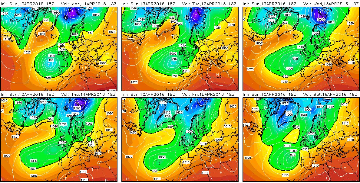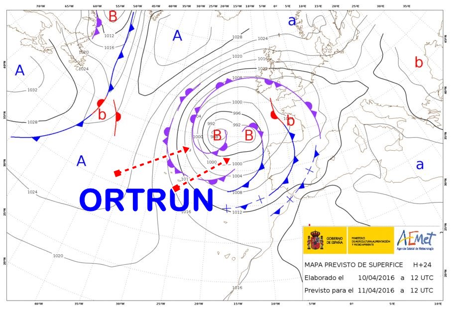 Pues si amigos, una borrasca casi estacionaria al oeste de Galicia sera la protagonista casi toda esta semana. El instituto de Berlin ya le ha puesto nombre, se llama Ortrun. Una pena que esta borrasca no bajase unos cientos de kilómetros más y se situara en el Cabo de San Vicente, la dorsal africana la culpable.
