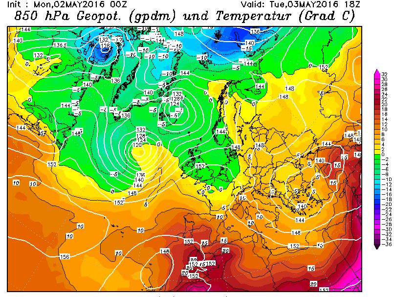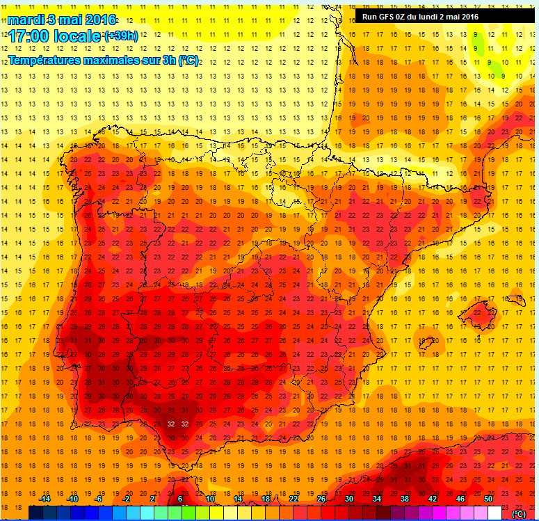 También tomara protagonismo las máximas que se darán en el Valle del Guadalquivir, en algunos puntos se pueden sobrepasar los 31 grados. Nuestra amiga la dorsal Africana nos quiere visitar durante unos dias, viene acompañada con una temperatura a 850 hpa ( 1500 metros) de entre 17 y 20 grados. Fuente gfs meteociel, wettrezentrale.