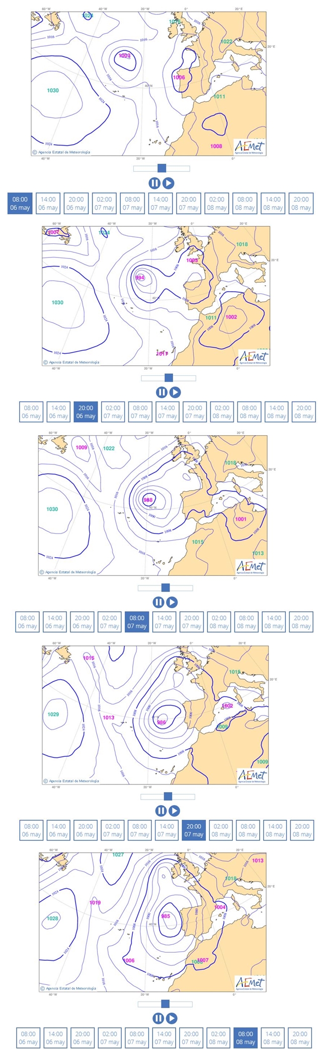 Pues si amigos de la meteo, a partir de hoy se producirá una ciclogénesis en el Atlántico que podría catalogarse de explosiva según los mapas del modelo hirlam . No es nada habitual que en un mes de mayo se de esto y ademas tan cerca de la península.