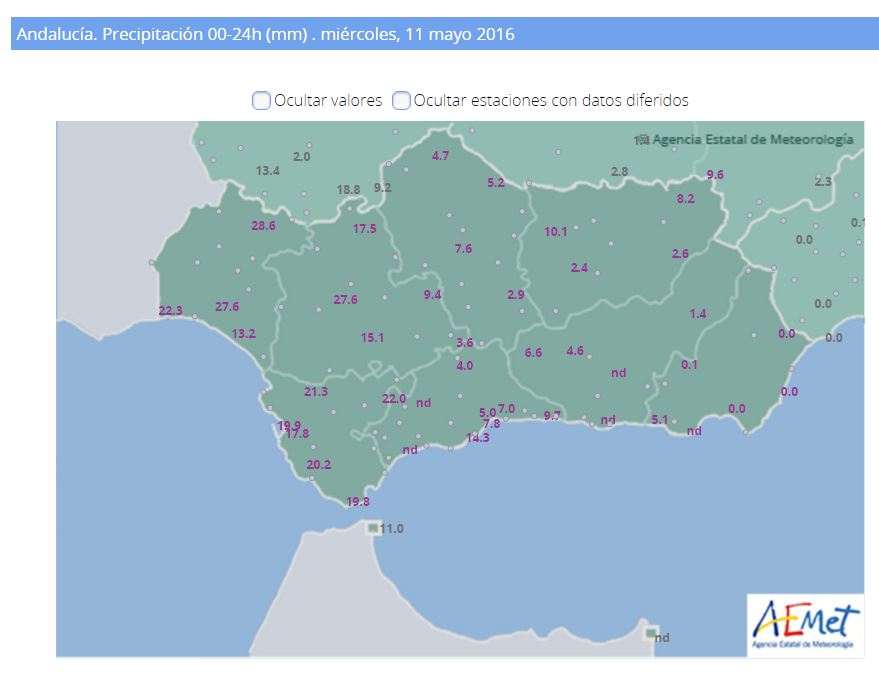 Mañana os daré la previsión del fin de semana, así como la cantidad de litros que llevamos recogidos. Os dejo con los datos más destacados que se dieron ayer y con unas cuantas fotos de los cielos malagueños.