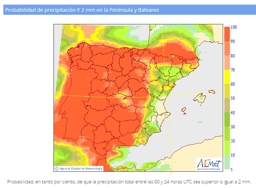 Aún hoy jueves pueden caer chubascos en cualquier punto de nuestra comunidad, siendo más probables en el interior, no se descartan en la Costa Mediterránea Andaluza. Os paso el mapa de probabilidad de lluvias previsto para hoy. Fuente aemet.