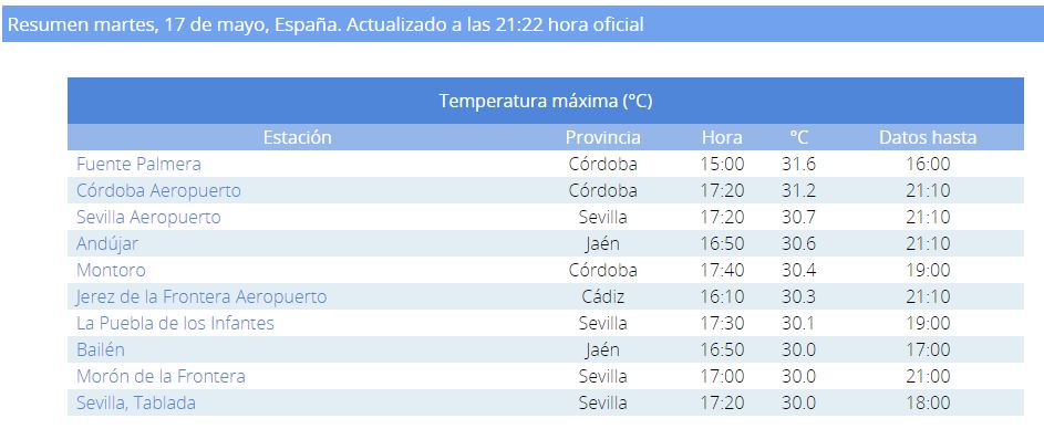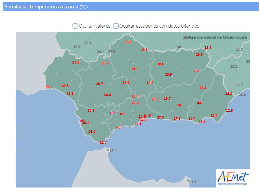 Lo más destacado fue el aire frío en altura que dejo tormentas en la provincia de Huelva por la tarde y la máxima de España que se dio en Fuente Palmera ( Córdoba) con 31,6. Os dejo el mapa de rayos de la aemet y los datos más destacados. Todo fuente aemet.