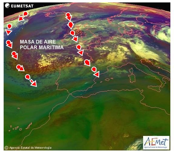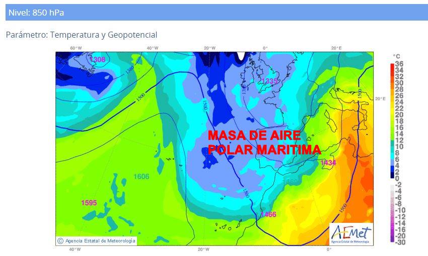 MASA DE AIRE POLAR MARÍTIMO QUE HARÁ BAJAR LAS TEMPERATURAS MÁXIMAS Y MÍNIMAS EN TODA LA PENÍNSULA.