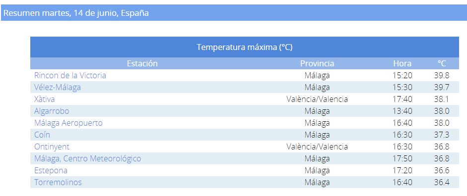 Poco más que contar de esta situación , os dejo con la previsión marítima y los datos más destacados que se dieron ayer. El Rincón de la Victoria dio la máxima de España con casi 40 grados.