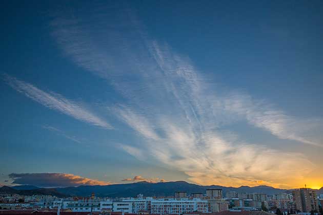 Buenos dias amigos de la meteo. En estos momentos cuando son las siete de la mañana, mi estación en Málaga Capital registra 23,7 grados, los cielos están poco nubosos y sopla fuerte viento de terral. La racha máxima se ha dado en el Puerto Malagueño con 41 km/h a las cuatro de la mañana. La máxima en la capital malagueña (aunque sople terral) rondara entre los 27 o 30 grados. A medida que pasen las horas ira tomando protagonismo el viento del oeste en el litoral que soplara con rachas fuertes. En la zona de la Axarquía las rachas de viento serán muy fuertes. Así amanece hoy en Málaga Capital.