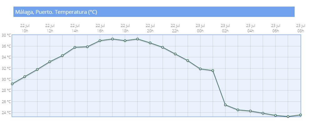 La máxima de España se dio en Vélez Málaga con 39,9 grados, seguida de Málaga Capital con 39.