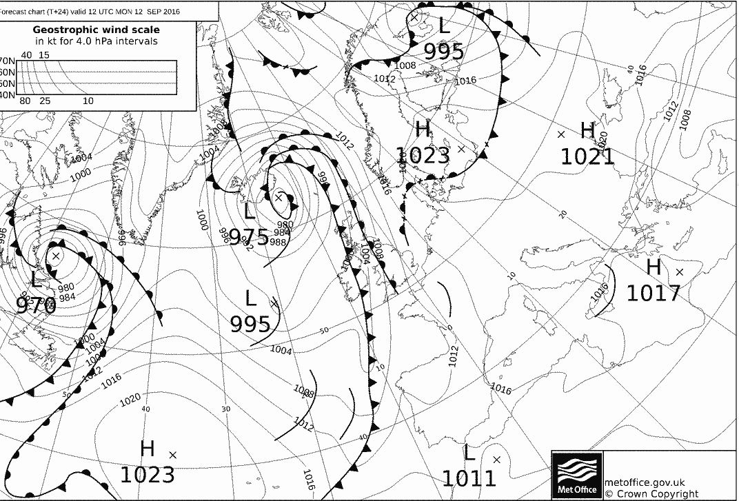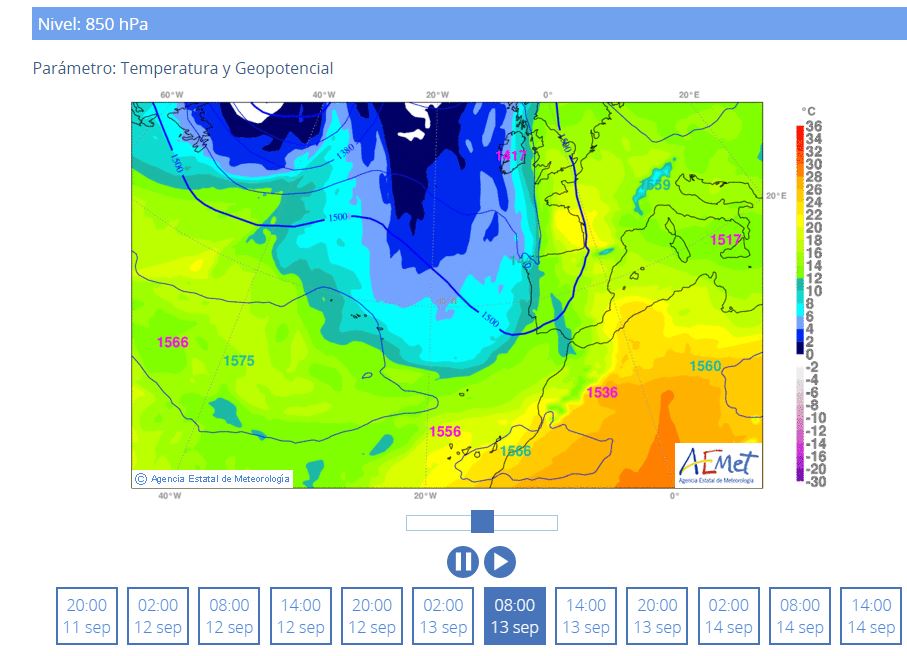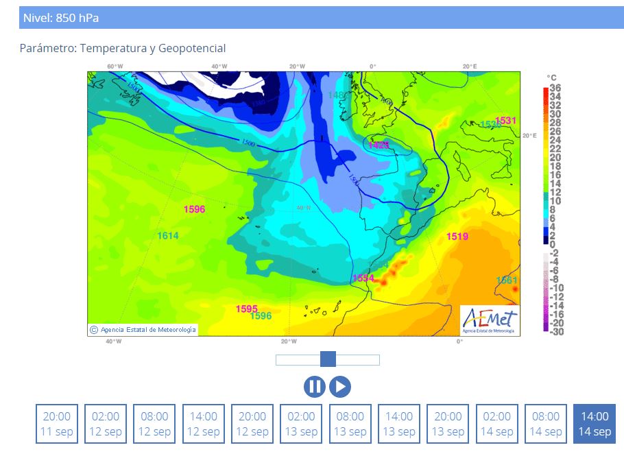 Desde hace unos dias venia anunciando en el blog el cambio brusco de tiempo que se espera a partir de mañana en España, solo las Islas Canarias quedarían fuera de este episodio. Las temperaturas máximas pueden bajar en el norte peninsular e interior hasta 18 grados. Os presento al frente frío que a partir de esta tarde noche traerá este brusco cambio de tiempo empezando por el noroeste. Y a la borrasca culpable de todo esto. Fuente meteogalicia y Met Office.