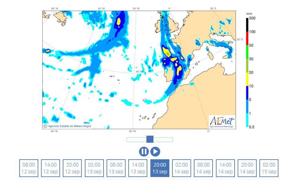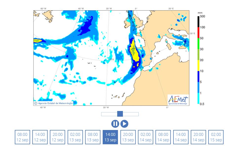 Este frente frío dejara mañana mas lluvias en la zona más occidental de nuestra comunidad, puede ir acompañados de tormentas. En el tercio oriental y litoral mediterráneo serán menos probables. En el interior de la provincia malagueña precipitaciones a partir del mediodía o por la tarde, sin descartar algunos chubascos débiles dispersos en el litoral. En el noroeste peninsular ( galicia) las lluvias serán fuertes, la aemete activa el aviso amarillo en esta zona. Os paso el mapa de lluvias previstos para mañana del modelo hirlam fuente aemet.