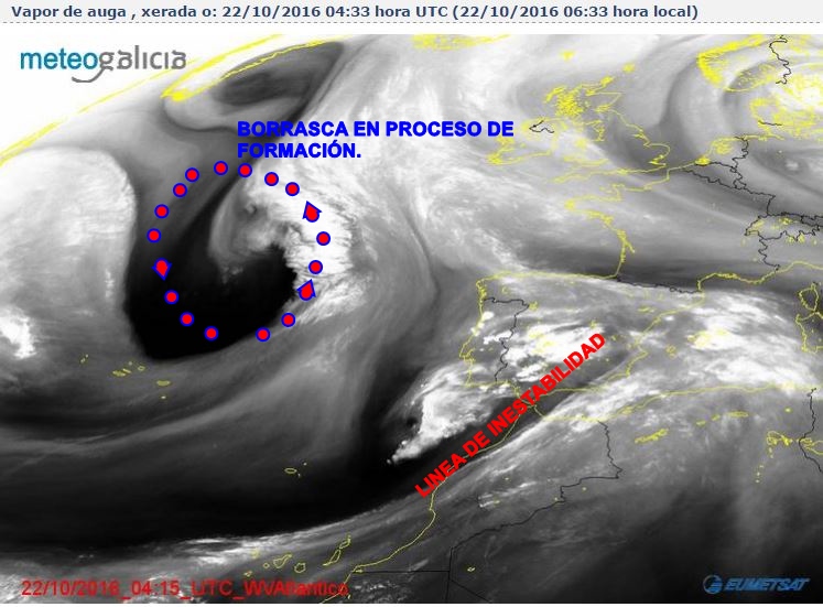 La imagen de vapor de agua es una pasada, fijaros como se enrosca. Os voy a pasar este enlace del sat 24, por si queréis ver su evolución durante el dia de hoy.