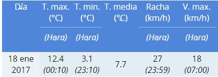 En Málaga Capital cayo cinarra, nieve granulada, granizo menudo tiene varios nombres. Pero os aseguro que a las once y media de la mañana en el centro donde yo trabajo ( El Corte Inglés Bahía Málaga) vi copos mezclados con la cinarra. Pero lo más destacado de la Capital fue su temperatura, ya que la máxima se dio de madrugada a las 00:00 horas con 12,4 grados y la mínima por la noche a las 23:10 con 3.