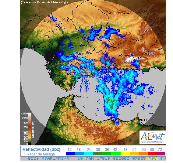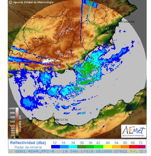 Os paso la imagen del radar de Málaga y de Almería y la imagen del satélite eumetsat. Fuente aemet y meteogalicia.
