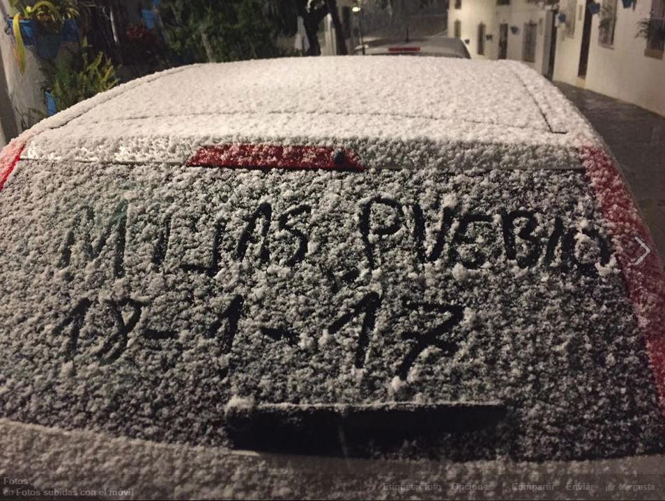 Como os comento en el titulo del post, se han registrado nevadas históricas en algunos municipios de nuestra provincia malagueña. Desde el año 1954 no se daba el caso de cuajar la nieve e incluso superar los 3 centímetros. Alhurín el Grande, Alhurin de la Torre, Coin que están a 200 metros sobre el nivel del mar se vistieron ayer por la noche de blanco. También destacar Mijas Pueblo que esta a 400 metros. A mayor altitud como es el caso de Yunquera y Alozania también se registraron nevadas, pero sin duda la mayor cantidad en centímetros que se ha dado ha sido en Ronda. Según me comentan algunos amigos hasta 7 centímetros. En Campanillas, por la zona de Maqueda y Parque Tecnológico cayeron bastantes copos ayer sobre las 22.00, pero no llego a cuajar. Os paso algunas fotos.