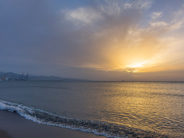 Buenos dias amigos de la meteorología, son las nueve menos cuarto de la mañana, mi estación en Málaga Capital registra 17,9 grados, los cielos están nubosos, y sopla viento de terral fuerte 8 las rachas han superado los 42 km/h). Impresionante las temperaturas que teníamos esta pasada madrugada, sobre las dos de la mañana el termómetro marcaba 21 grados. Destacar también que tenemos un poco de polvo en suspensión, como podéis comprobar en esta foto que he hecho esta mañana en la playa de la misericordia.