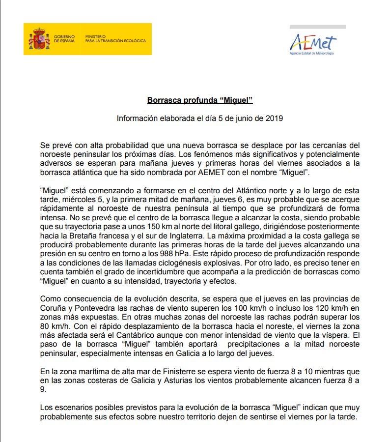 Poco más que contar, mañana os daré la previsión del fin de semana. Os dejo con la nota informativa que saco ayer por la tarde la aemet.