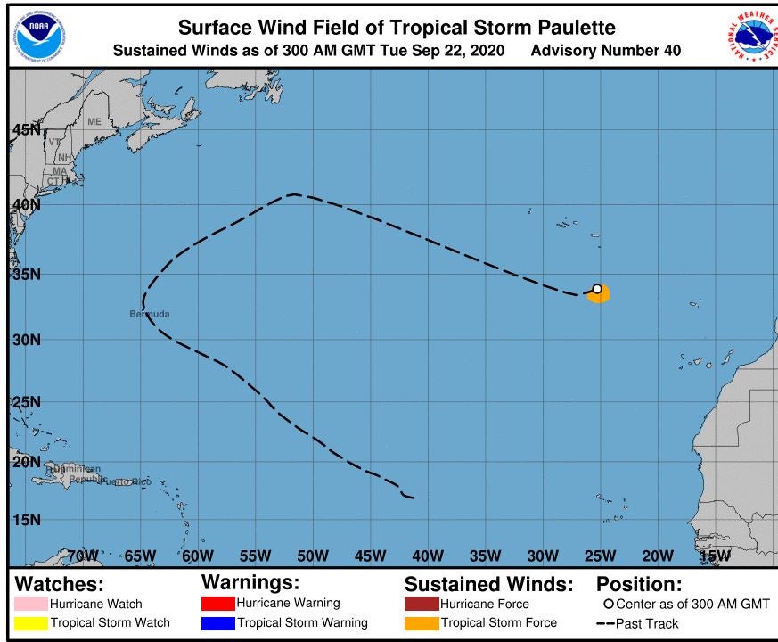 Muy buenos días, amigos de la meteo. Nuevamente la meteo trae sorpresas en forma de tormenta tropical. Nuestra amiga Paulette ha resurgido de sus propias cenizas como el Ave Fénix y nuevamente se ha convertido en tormenta tropical al llegar sus restos a aguas más cálidas cercanas a las Islas Azores. Paulette nació el 9 de septiembre como tormenta tropical, más tarde se convirtió en un huracán de categoría 2.