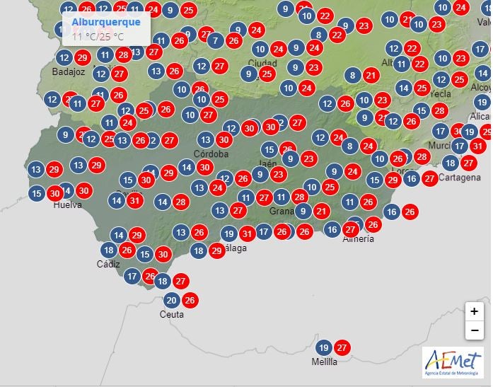 En las demás zonas de nuestra comunidad las temperaturas máximas estarán por encima de la media.