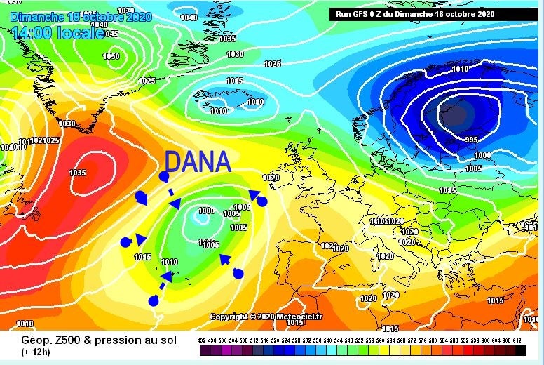 Esta pasada madrugada se ha formado una dana al norte de las azores, como muchos sabéis, una dana es una depresión aislada en niveles altos de la circulación general.